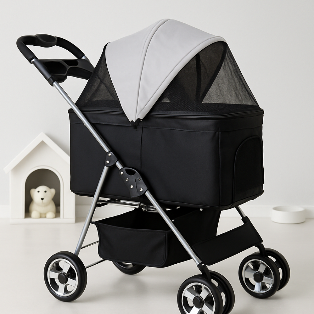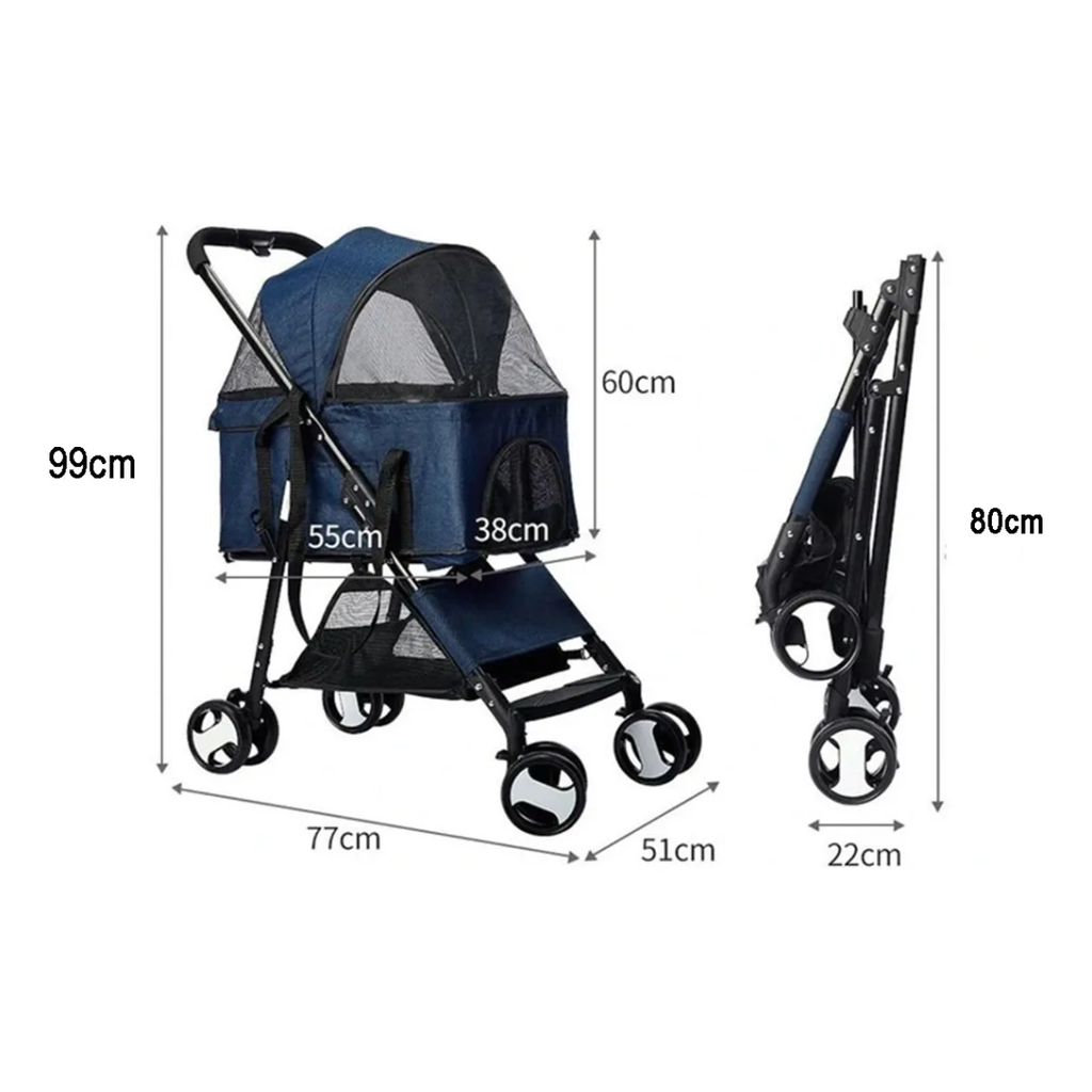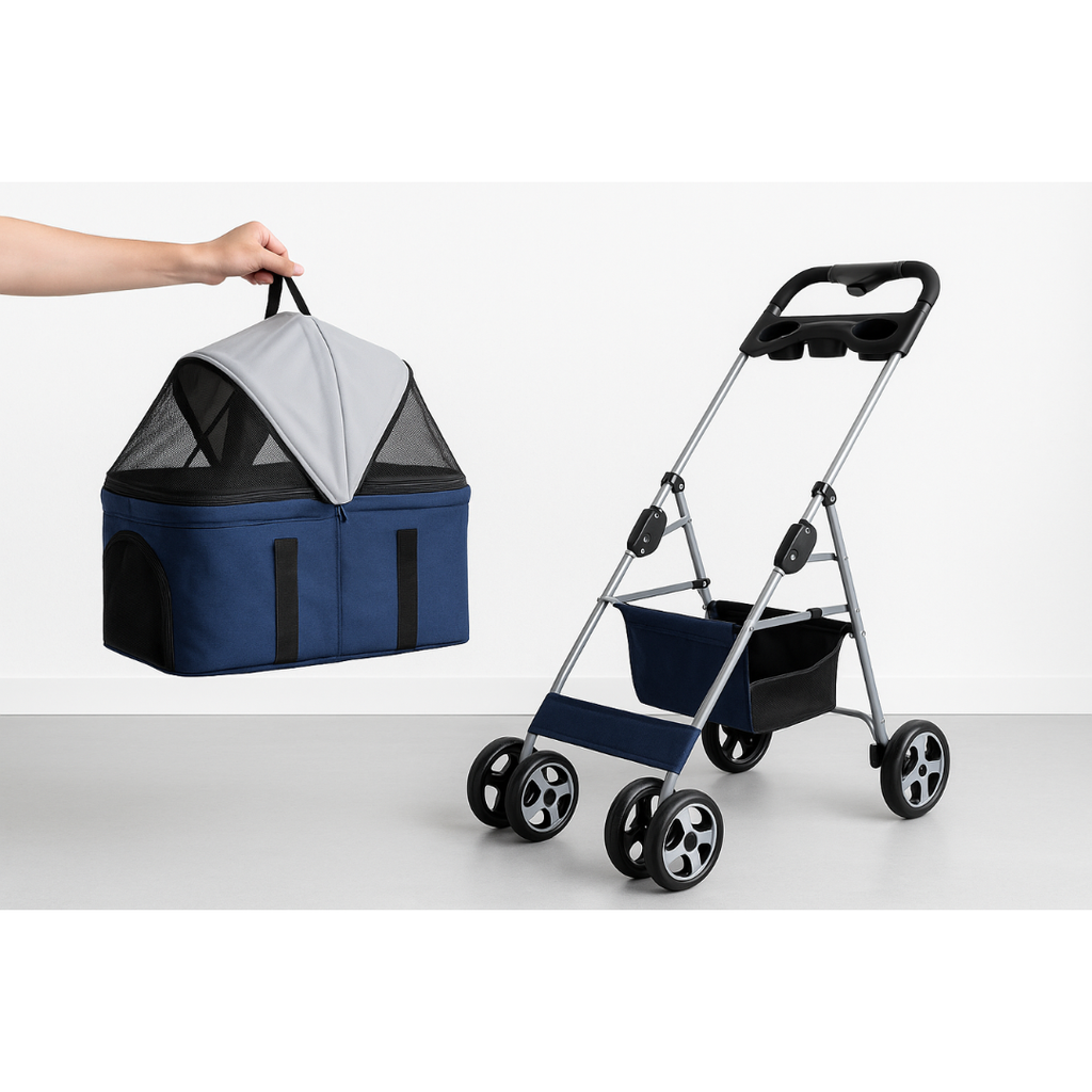 O carrinho de passeio é uma solução segura e confortável para o seu bichinho de estimação. Ideal para passeios mais longos em que o animal precisa caminhar muito, também é muito útil para filhotes que ainda não estão com todas as vacinas e pets com dificuldade de mobilidade.