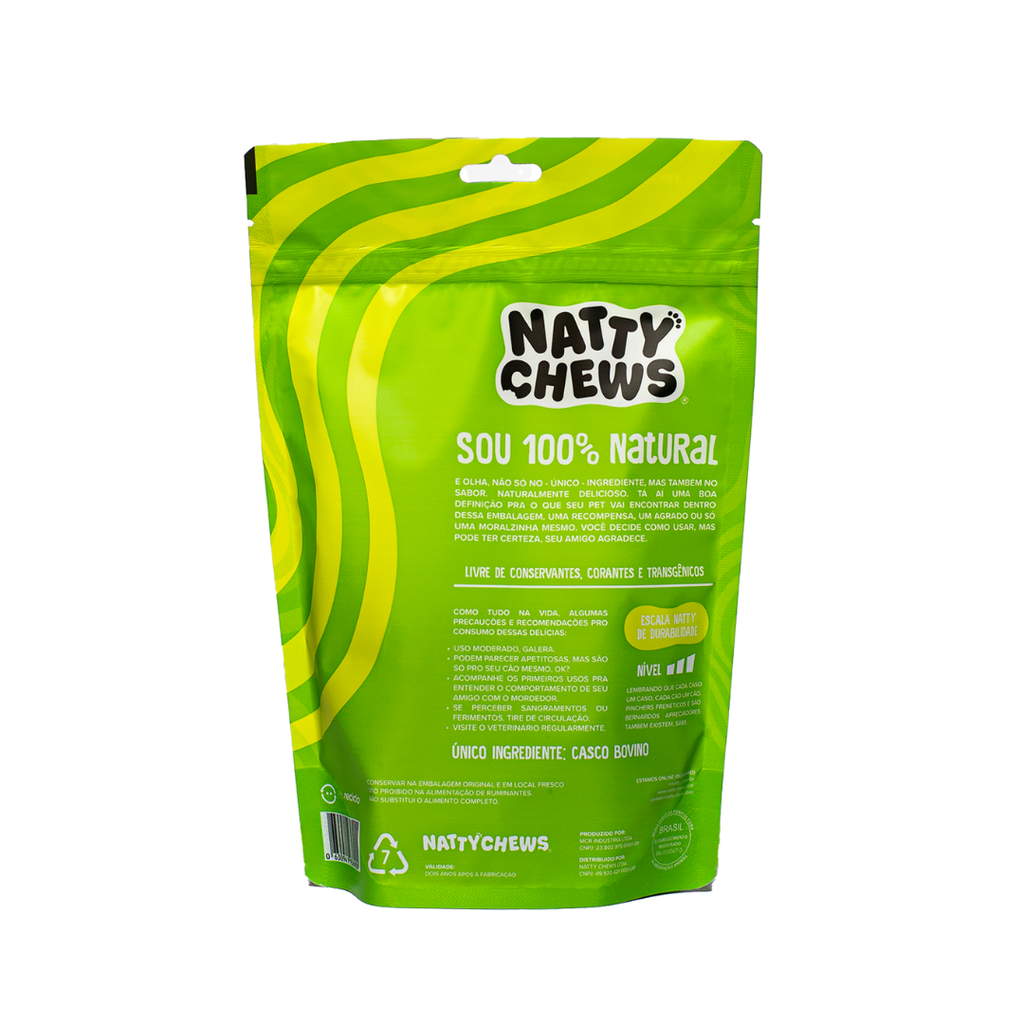 Os mordedores Natty Chews são 100% naturais e levam somente um ingrediente em sua composição. Não possuem aditivos, conservantes e corantes, sempre pensando no melhor para nossos pets.