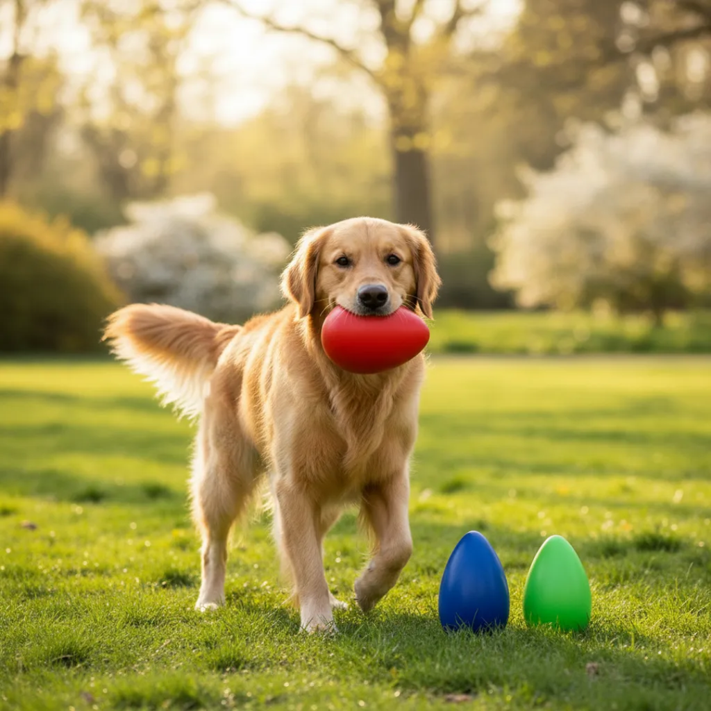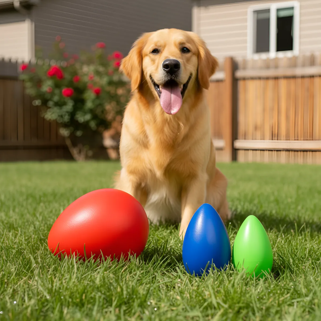 - A superfície brilhante e dura do ovo torna difícil para o cão mordê-lo.