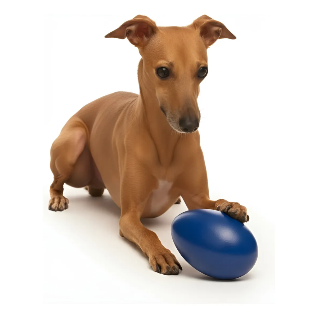 - O cão pode empurrar o ovo com o focinho ou a pata e a forma torna os movimentos do ovo imprevisíveis para o cão e por isso fica muito tempo apanhado pelo brinquedo.