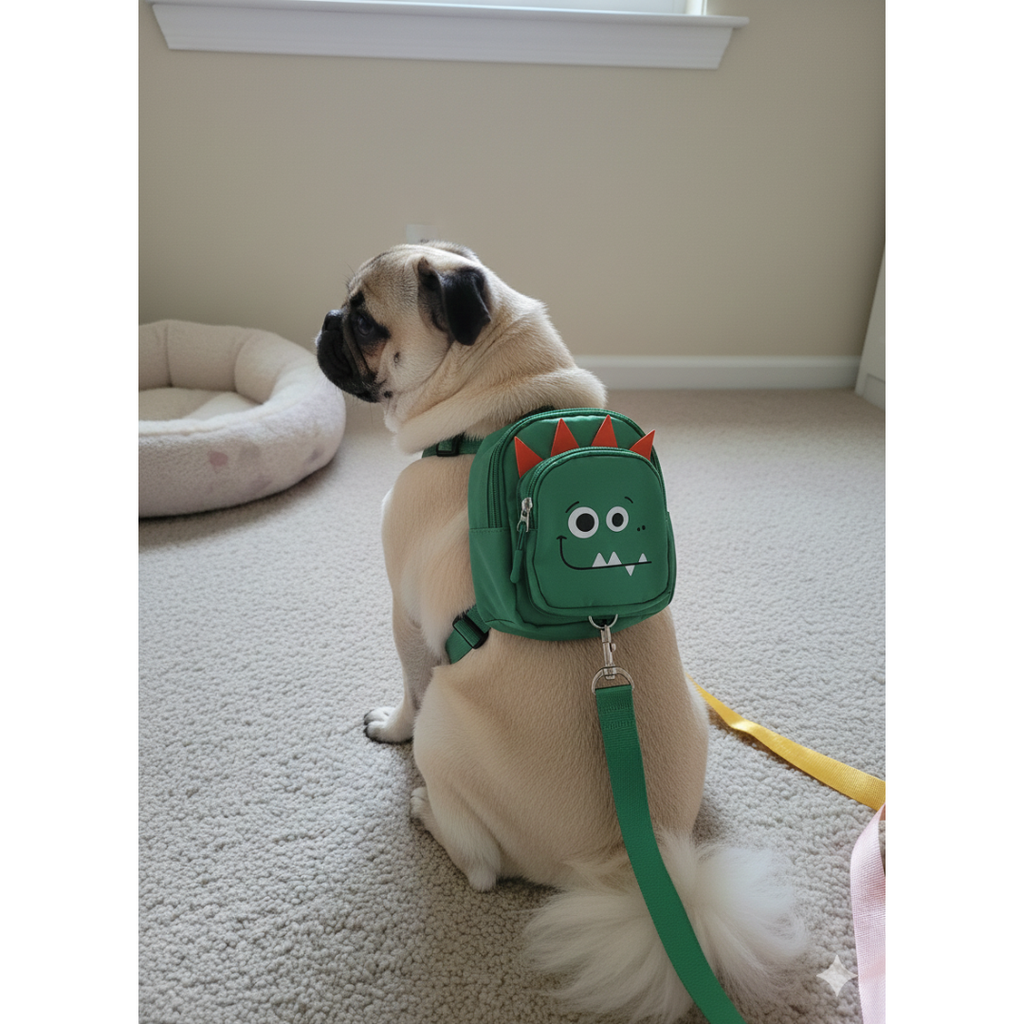 Há uma grande capacidade nesta mochila de estimação, que pode armazenar lanches, chaves, copos de água e outros itens, e também há um bolso de lixo lá fora. É equipado com dois anéis de tração e corda de tração que podem ser usados juntos.