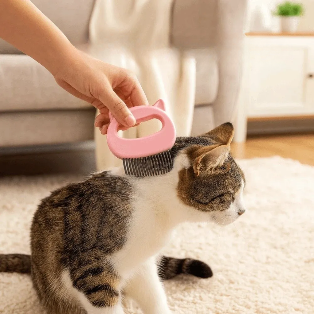 O primeiro passo para saber como funciona o Pente Fino para pelos é identificar onde estão os emaranhados e nós. Passe a mão suavemente pela pelagem e perceba se há alguma mudança de textura ou se sua mão fica presa em algum ponto. E, se isso ocorrer, observe se há nó ou embaraço no local. Caso haja, pegue o Pente Fino para pelos e de maneira suave e lenta faça o movimento de pentear, que com poucos movimentos você verá que não haverá mais embaraços nem nós nem sofrimento em seu bichano. Descrição do produto: Tipo de item: pente para animais de estimação. Material: Plástico ABS e muito durável. Público alvo: Gatos. Tamanho: 10cm x 9cm x 1,5cm. Conteúdo do pedido: 1 unidade. Principais características: - Remove pelos soltos e desembaraça todo o resto; - Desprende possíveis carrapatos; - É excelente para gatos de pêlos longos e médios