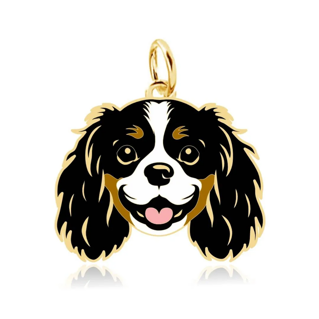 Um pingente recortado e colorido de Cavalier folheado em ouro 18K seria uma peça encantadora e vibrante que celebra a beleza e a personalidade cativante desta nobre raça canina. Com um design detalhado e delicado, este pingente destacaria as características distintivas do Cavalier King Charles Spaniel em um formato colorido e encantador. Você pode optar por usar este modelo com uma linda corrente disponível em nosso site, dando ainda mais significado para a peça.