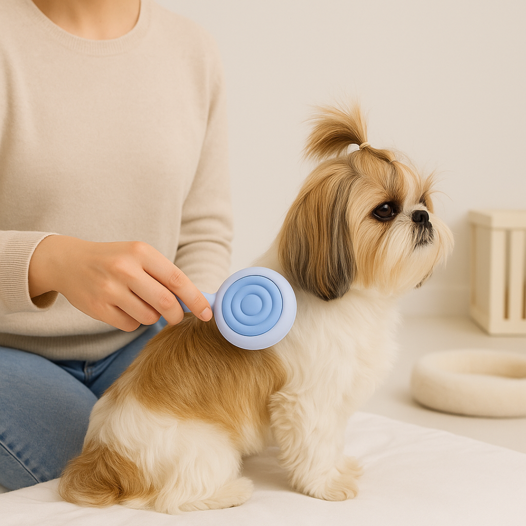 BOTÃO DE LIMPEZA AUTOMÁTICA: basta pressionar o botão da escova para animais de estimação para limpar o cabelo preso nos dentes do pente de uma só vez, reduzindo o incômodo de limpeza.